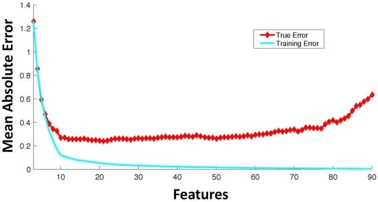 Random forest regression [58] has become a commonly-used tool in multiple prediction scenarios [25,48,85,86,87,88,89,90,91,92] due to its high accuracy and ability to handle large features with small samples. Random forest [58] combines the two concepts of bagging and random selection of features [93,94,95] by generating a set of T regression trees where the training set for each tree is selected using bootstrap sampling from the original sample set, and the features considered for partitioning at each node are a random subset of the original set of features. Regression tree is a form of non-linear regression model where samples are partitioned at each node of a binary tree based on the value of one selected input feature [96]. The bootstrap sampling for each regression tree generation and the random selection of features considered for partitioning at each node reduces the correlation between the generated regression trees, and thus, by averaging their prediction responses, it is expected to reduce the variance of the error.