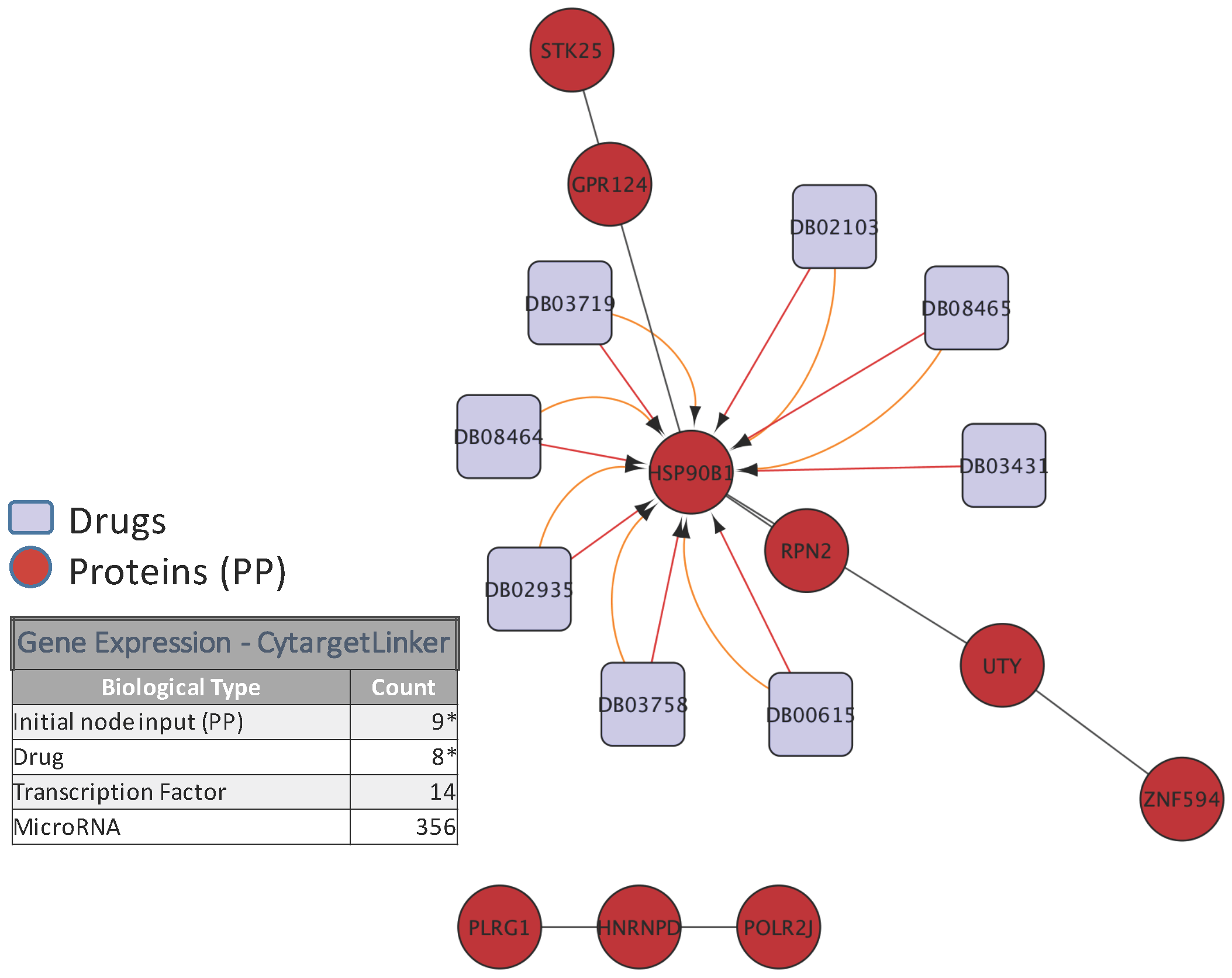 - Shannon, P.; Markiel, A.; Ozier, O.; Baliga, N.S.; Wang, J.T.; Ramage, D.; Amin, N.; Schwikowski, B.; Ideker, T. Cytoscape: A software environment for integrated models of biomolecular interaction networks. Genome Res. 2003, 13, 2498–2504. [Google Scholar] [CrossRef] [PubMed]