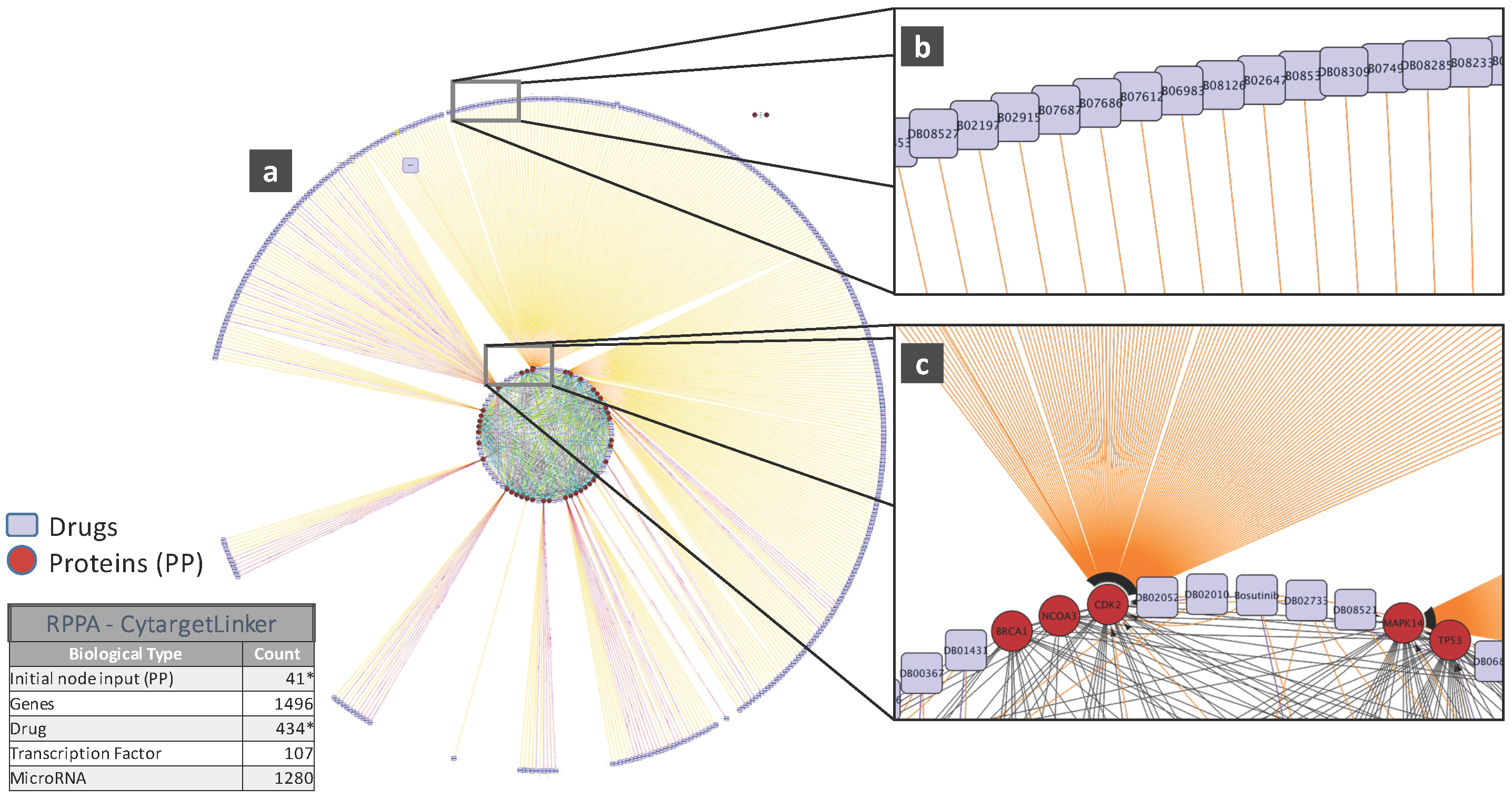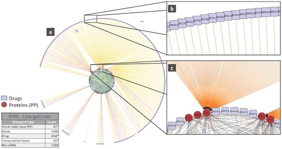 - Kutmon, M.; Kelder, T.; Mandaviya, P.; Evelo, C.T.; Coort, S.L. CyTargetLinker: A cytoscape app to integrate regulatory interactions in network analysis. PLoS ONE 2013, 8, e82160. [Google Scholar] [CrossRef] [PubMed]