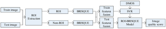 In the observation of the image, human eye will be the first to pay attention to the visual characteristics of the more prominent areas. Although the image suffered the same damage, because of the different regions, the human eye subjective feelings are different. Based on the background, this paper proposes a method of image quality evaluation based on visual perception. Firstly, we extract the region of interest. Secondly, extract the features from the regions of interest and regions of non-interest. Finally, the extracted features are fused effectively, and the image quality evaluation model is established. The proposed approach we called region of interest blind/reference image spatial quality evaluator (ROI-BRISQUE). Figure 7 is the framework of the proposed method in this paper.