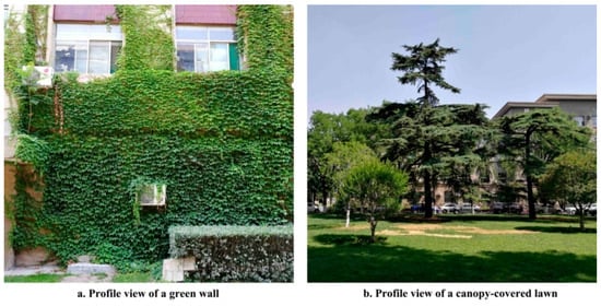 Profile view of a green wall (a) and a canopy-covered lawn (b).