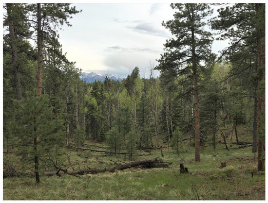 - Matonis, M.S.; Binkley, D.; Tuten, M.; Cheng, T. The Forests They Are A-Changin’: Ponderosa pine and Mixed Conifer Forests on the Uncompahgre Plateau in 1875 and 2010-13; Colorado Forest Restoration Institute: Forest Collins, CO, USA, 2010. [Google Scholar]