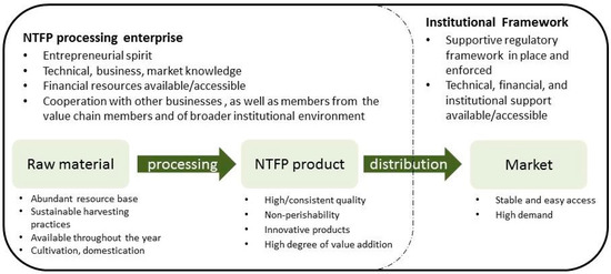 Against this background, this review aims to identify enabling and constraining factors affecting pro-poor NTFP commercialization and the development of small and medium sized enterprises (SMEs) based on processing the resources. Using systematic review methodology, studies investigating processed, commercialized NTFPs and their economic impacts have been identified and categorized depending on their levels of commercialization. Naturally, upgrading opportunities do not prevail for all NTFPs but often concentrate on selected species, serving niche or export markets. Nevertheless, such markets may still be substantial and benefit many [43].
