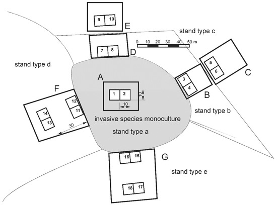 - Halarewicz, A.; Żołnierz, L. Changes in the understorey of mixed coniferous forest plant communities dominated by the American black cherry (Prunus serotina Ehrh.). For. Ecol. Manag. 2014, 313, 91–97. [Google Scholar] [CrossRef]
