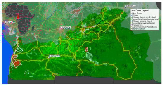 - IGN. France Cartographies Forestières Historiques et Détaillées du Cameroun Résultats Statistiques Finaux; IGN: Paris, France, 2015. [Google Scholar]