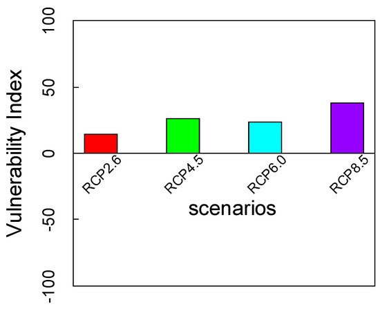 Overall vulnerability index of P. davidiana under future climatic change scenarios.