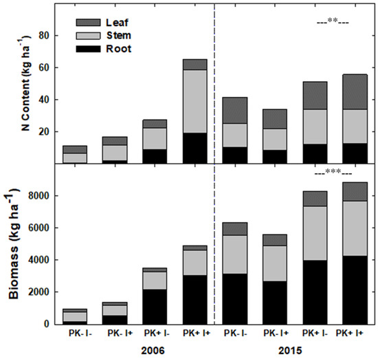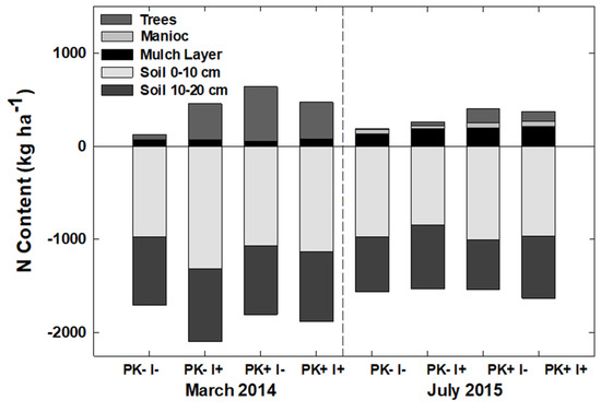25] under improved fallow, we hypothesized that agroecosystem N stocks would be higher with P+K fertilization and with the presence of