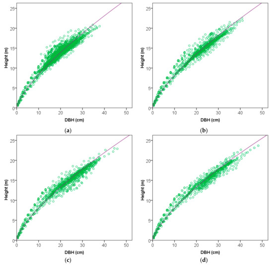 - Temesgen, H.; Gadow, K.V. Generalized height-diameter models—An application for major tree species in complex stands of interior British Columbia. Eur. J. For. Res. 2004, 123, 45–51. [Google Scholar] [CrossRef]