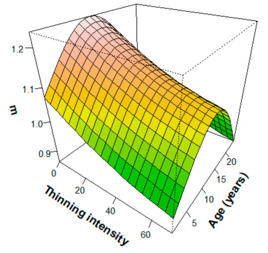 3.2.2. Effects of Thinning on Height–Diameter Allometry