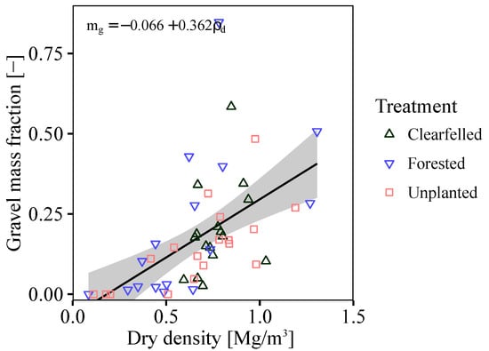 In deeper seated layers, where rooting was sparse and therefore root-reinforcement small, the variation in peak shear strength as measured with the corkscrew was mainly driven by local variations in soil dry densities and the mass fraction of gravel. Since these showed considerable variation across the site, a large variation in measured strengths was observed, obscuring any difference between treatments in terms of root-reinforcement.