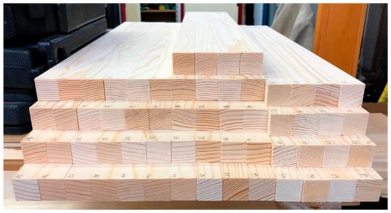 24. International Organization for Standardization. Physical and Mechanical Properties of Wood—Test Methods for Small Clear Wood Specimens—Part 1: Determination of Moisture Content for Physical and Mechanical Tests; ISO 13061-1:2014; ISO: Geneva, Switzerland, 2014; p. 4. [Google Scholar]