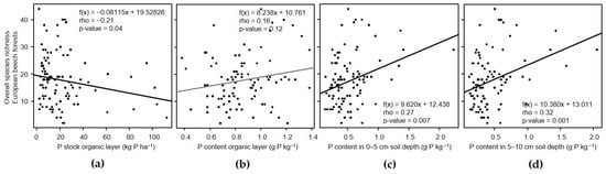 3.3. Relation of α-Diversity with Phosphorus in the Organic Layer and Soil