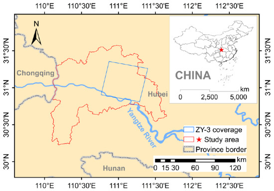 Our study area is located in the Yangtze River Basin, upstream from the Three Gorges Dam in Hubei Province, Central China (30°13′40″–31°34′32″ N, 110°4′54″–111°39′11″ E) (Figure 1). This is a transitional zone between the mountains and plains with a total area of 11,339.70 km2. The region is ecologically fragile and dominated by forest ecosystems. It is an important area for ecological protection and biodiversity conservation. The region’s ecological significance is the main reason we chose it as our study area. Due to the completion of the Three Gorges Reservoir, the changes in the ecological environment in this region have received considerable attention in the last decade. We expect that the forest canopy height product obtained in this study will serve as a reference for related future studies.