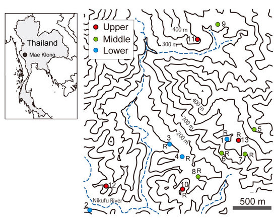 - Pampasit, S.; Khamyong, S.; Breulmann, G.; Ninomiya, I.; Ogino, K. Mineral Element Accumulation in Soils and Trees in Tropical Hill Evergreen Forest, Northern Thailand. Tropics 2000, 9, 275–286. [Google Scholar] [CrossRef]