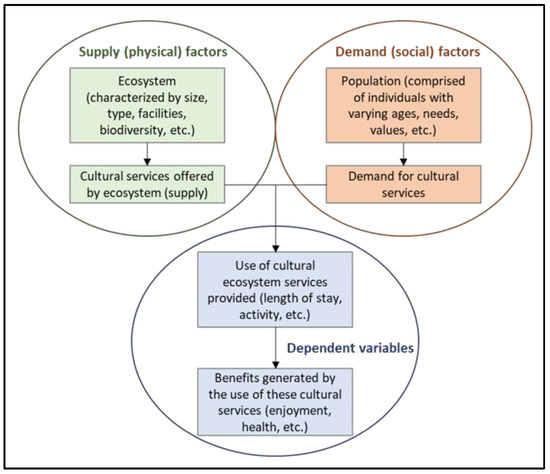 Confluence model: how supply and demand factors determine the use of cultural ecosystem services [17] (p. 49, adapted).
