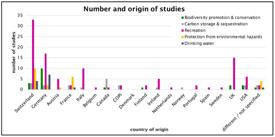 Figure 4 shows the countries of origin and number of studies of the different forest ecosystem services.