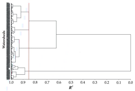 Group tree of watersheds using cluster analysis based on the coefficient of determination (R2).