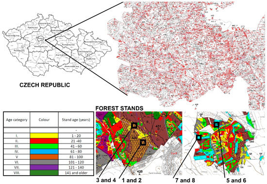 Location of study areas in the Czech Republic and description of particular forest stands.