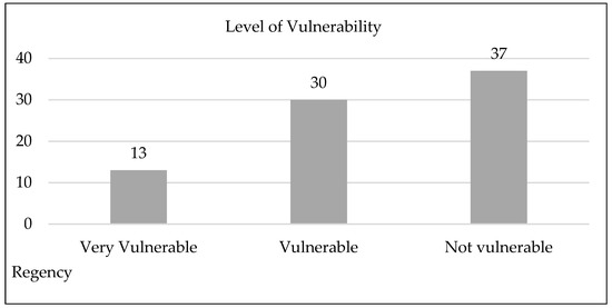 The level of vulnerability to deforestation in Sulawesi is dominated by deforestation events that are not prone (37 districts). Very vulnerable categories are found in 13 districts. Areas that are categorized as very vulnerable are directed to become priority in deforestation handling in Sulawesi. This very vulnerable category is generally deforestation that occurred in the 2010–2018 period with a moderate to high rate. This period is a period of implementation of regulations related to regional autonomy in Indonesia [38].