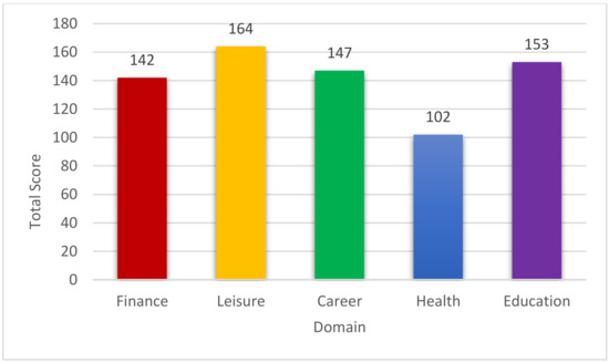 Our results from the questionnaire approach are shown in Figure 2. We used a composite scoring system and forestland owners reported that they are willing to take more risk in the leisure domain with a score of 164 compared to the rest of the domains. This makes sense because many forestland owners manage forestlands for recreational and cultural purposes, including for aesthetic benefits rather than financial. From the composite scores, we find that forestland owners’ willingness to take risk is low in the health domain with a score of 102. Compared with the leisure domain, participants also reported low willingness to take risk in the finance domain with a score of 142, career domain scored 147 points, and score of 153 for the education domain. A statistical test for the internal consistency of the risk rating gave a Cronbach’s alpha score of 0.8 which is good and shows that the number of domains used in the risk rating did not affect the outcome of the rating.