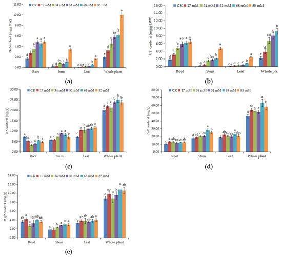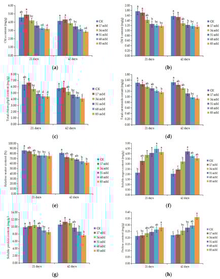 - Sotiropoulos, T.E. Effect of NaCl and CaCl2 on growth and contents of minerals, chlorophyll, proline and sugars in the apple rootstock M 4 cultured in vitro. Biol. Plant. 2007, 51, 177–180. [Google Scholar] [CrossRef]