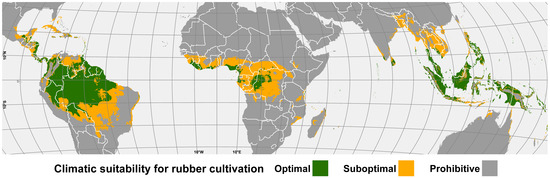 - Golbon, R.; Cotter, M.; Sauerborn, J. Climate change impact assessment on the potential rubber cultivating area in the Greater Mekong Subregion. Environ. Res. Lett. 2018, 13, 084002. [Google Scholar] [CrossRef]