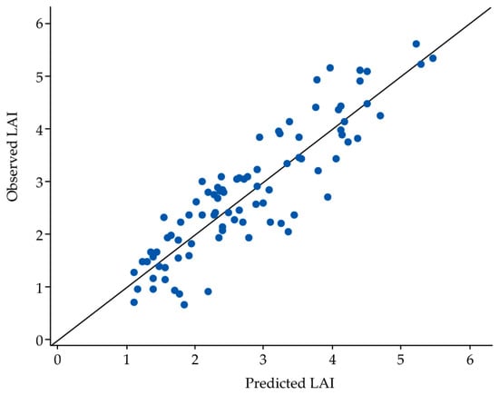 One to one graph of predicted LAI vs observed LAI.