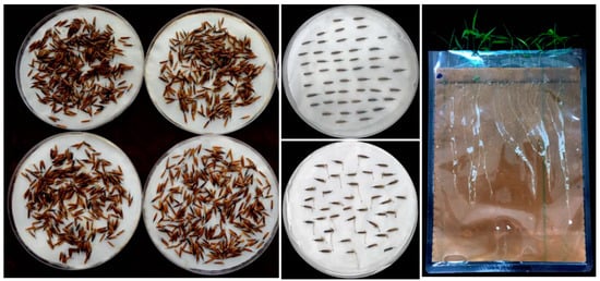 The sprouting seed materials used in this study were taken from the parent P. edulis from Guilin, Guangxi in September 2017. The thousand seed weight of these seed materials is equal to 22.75 ± 0.35 g. The P. edulis seeds were treated in November 2017. The seeds were soaked in warm water for 24 h at 50 °C, and then removed and disinfected with 5‰ potassium permanganate solution for 5 min. The sterilized seeds were then repeatedly washed with distilled water and germinated in an incubator in a dark environment set to a constant temperature of 25 °C. After the seeds germinated, the seedlings were selected for regular, even growth and placed in a Petri dish with pad disinfectant (lower layer) and filter paper (upper layer). The dishes were cultured at a constant temperature of 28 °C in an illumination incubator (PRX-1000B, Safe, Ningbo, China). The Petri dishes were set to point the roots vertically downwards. Proper humidity was maintained in the Petri dishes and any seeds found to be growing mold were removed. When the vertical root length reached approximately 3 cm, the seedlings were transferred to a Seed Germination Pouch (Phytotc CYG-98LB, size: 30 cm × 25 cm, Beijing Bioconsumable Tech., Ltd., Beijing, China) and cultured with a 12-h light period with a light intensity of 120–150 mmol m−2 s−1 and a temperature of 22 ± 2 °C. Figure 1 gives more details about the performance of the experimental materials.