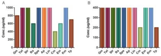 3.2. Antimicrobial Minimum Inhibitory Concentration (MIC) Test