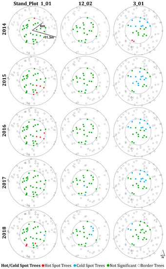 3.4. Hot Spot and Cold Spot Trees within Plots