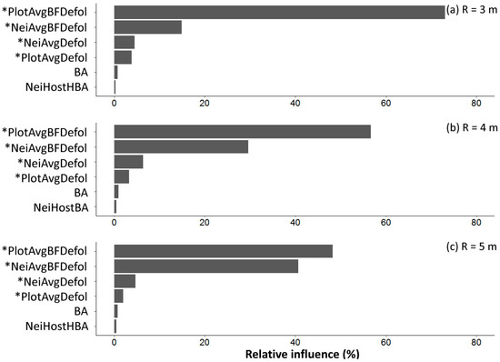 | NeiHostHBA | Total basal area of host trees with basal area greater than the subject balsam fir in the neighborhood (m2 ha−1) |