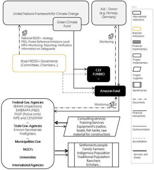- Dalene, E. An Assessment of the Brazilian REDD+ Governance System. A Case Study of the Amazon Fund; Norwegian University of Life Sciences: Ås, Norway, 2011. [Google Scholar]