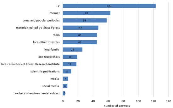 Social functions of forests are difficult to define and measure, which include recreation, tourism, education, and various traditional uses [4]. The State Forests place substantial efforts into raising public awareness of recreational and educational infrastructure available in forests, including: parks and arboreta (of which there are 17 in Poland), centres for ecological education (over 20), educational rooms (50), scenic viewpoints (318) and nature paths (over 150). The so-called green schools and Promotional Forest Complexes and Forest Education Centres, which are located in Forest Districts, run educational courses for primary school pupils (reaching over 815,000 people in 2015) and middle and high school students (about 450,000 people in 2015) [5]. At the national level, more than 9000 foresters in Poland provide public education about forests. A noticeable disadvantage of the current system is the fact that forest education for the majority of foresters is an additional responsibility on top of their other duties [6].