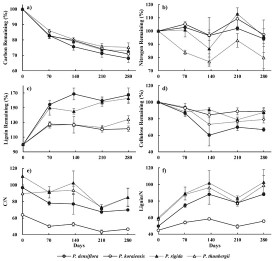 Chae, H.M.; Choi, S.H.; Lee, S.H.; Cha, S.; Yang, K.C.; Shim, J.K. Effect of Litter Quality on Needle Decomposition for Four Pine Species in Korea. Forests 2019, 10, 371. https://doi.org/10.3390/f10050371