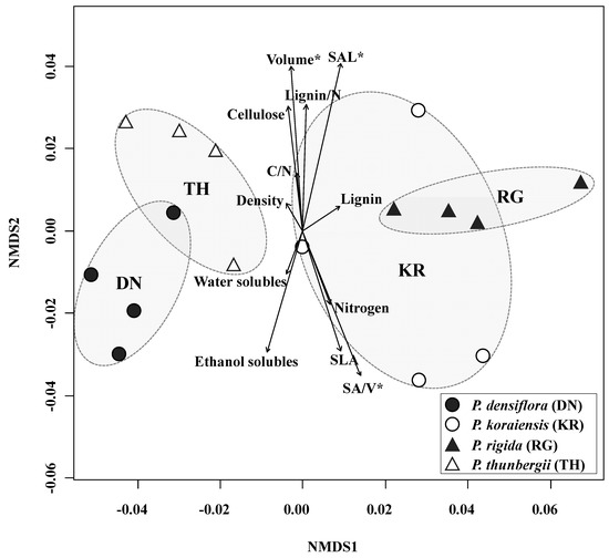 | P. densiflora | P. koraiensis | P. rigida | P. thunbergii | |