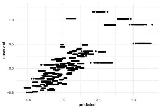 The final model explained 68.5% (RMSE = 0.20, MAE = 0.14) of the spatial variability of the -diversity (Equation (4)).