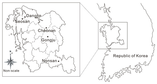 - Yang, B. Republic of Korea, Nation Map Book II; Ministry of Land, Infrastructure and Transport, National Geographic Information Institute: Suwon, Gyeonggi-do, Korea, 2016. Available online: http://map.ngii.go.kr/ms/pblictn/nationMapBook.do (accessed on 17 September 2018).