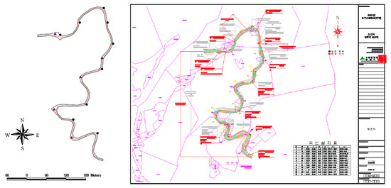 These methods for spatial information acquisition include a variety of detailed techniques, and the most representative techniques in terms of cost and time efficiency may be Computer Aided Design (CAD) file conversion [4,9], image warping [10,11] of as-built drawings, and Global Network Satellite System (GNSS) mapping [1,2]. The CAD file conversion technique utilizes digital as-built drawings with relatively up-to-date spatial information [8], and thus, it is easy to store, utilize and convert data on forest roads. The image warping technique is used for digital mapping of forest roads by calibrating image data on the as-built drawing based on the position coordinates established by GNSS surveys [11]. GNSS surveys are very useful in forest areas with a high-degree of roughness (i.e., complex topography, geology, and vegetation), and can produce relatively accurate and inexpensive thematic maps within a relatively small area [2,3].
