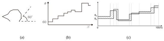 Turning function analysis is another method to compare the shape differences of objects, by plotting the rotation angles and lengths of polygonal chains [17,18]. It typically uses a graph that has the x-axis as the length of the comparing object and the y-axis as the rotation angle. Thus, the x-axis depends on the chain length. The y-axis value increases as the rotation angle of the chain increases, and decreases as the rotation angle decreases.