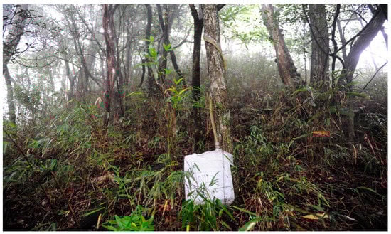 - Van Stan, J.T.; Pypker, T.G. A review and evaluation of forest canopy epiphyte roles in the partitioning and chemical alteration of precipitation. Sci. Total Environ. 2015, 536, 813–824. [Google Scholar] [CrossRef]