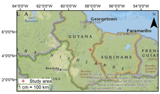 Guyana has approximately 18.3 million hectares of forests with a relatively low deforestation rate (between 0.1 and 0.3% per year), but is expected to increase in the future []. A cooperation between the Governments of Norway and Guyana expresses their willingness to provide a replicable model on how REDD+ can align the national forest countries’ objectives with the world’s need to combat climate change []. For that, Guyana is one of the first countries to establish a national program for reducing emissions from deforestation and degradation (REDD+; []). Guyana’s REDD+ activities include the design and implementation of a national monitoring, measurement, reporting and verification (MMRV) system, which should be able to assess and reduce aboveground biomass (AGB) uncertainties within the country’s capacities and capabilities [].