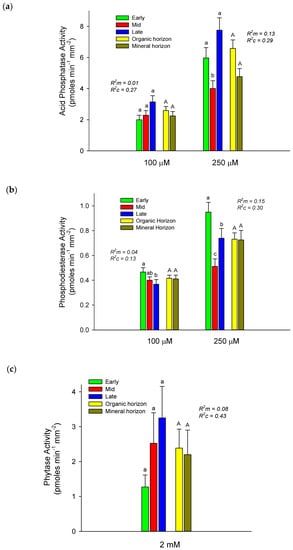 - van Aarle, I.M.; Plassard, C. Spatial distribution of phosphatase activity associated with ectomycorrhizal plants is related to soil type. Soil Biol. Biochem. 2010, 42, 324–330. [Google Scholar] [CrossRef]