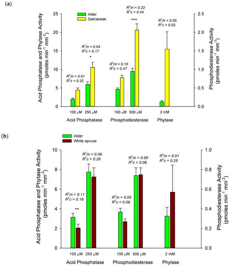 Ruess, R.W.; Swanson, M.M.; Kielland, K.; McFarland, J.W.; Olson, K.D.; Taylor, D.L. Phosphorus Mobilizing Enzymes of Alnus-Associated Ectomycorrhizal Fungi in an Alaskan Boreal Floodplain. Forests 2019, 10, 554. https://doi.org/10.3390/f10070554