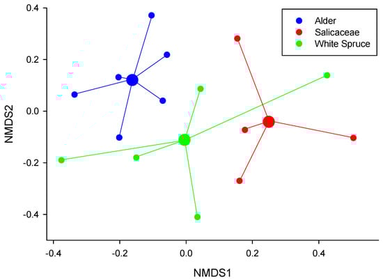 - Anderson, M.D.; Ruess, R.W.; Taylor, D.L.; Myrold, D.D. Host species and habitat affect nodulation by specific Frankia genotypes in two species of Alnus in interior Alaska. Oecologia 2009, 160, 619–630. [Google Scholar] [CrossRef]