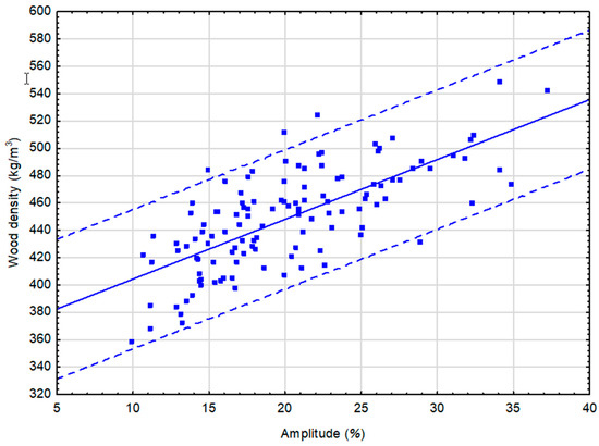p ≤ 0.05) mean amplitude-wood density relationship for red pine trees. However, the portion of variability explained was lower than what was determined for jack pine (27% for red pine versus 51% for jack pine). Downes [