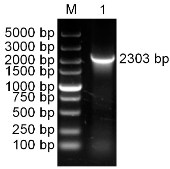 Using specific primers (PaPAL-F1 and PaPAL-R1), the full-length cDNA sequence of PAL was amplified from cDNA of P. asperata young needles by RT-PCR. The product was found to be 2303 bp in size (Figure 1) and was designated PaPAL (GenBank accession No. MK770350).