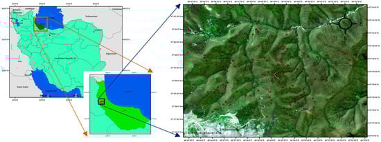 Field data were collected during July 2014 to March 2015. The in situ measurements were conducted in 148 circular plots with 18 m radius each and distributed in a randomly positioned square grid, as prescribed by the technical bureau of the Iranian Forests, Rangelands and Watershed Management Organization (FRWO) []. In each plot, the diameter at breast height (DBH; i.e., 1.5 m above ground surface) and the species type were recorded for all trees. For a sample of trees, the dominant species was recorded in each plot. Finally, the GSV values were calculated in each stand by means of DBH and lookup tables for each species separately.