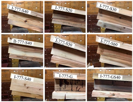 However, plantation wood often has a medium or small diameter, and the proportion of juvenile wood is higher than that of natural forests, thereby limiting direct structural application. Csoka et al. [] mentioned that the lumber obtained from young Japanese cedar contains a high percentage of juvenile wood, which is unfavorable in structural applications. Therefore, engineered products using plantation wood for structural applications should be developed to solve the shortage of high-diameter timber. Glued wood products such as glued-laminated beams constructed using plantation wood have been studied using different species and types of wood adhesives. However, few studies have investigated the use of plantation wood for built-up structural components.