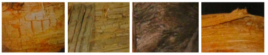 The researchers mentioned above solved the problem of the archeological wood components and the degradation state of archeological wood. There are also some specialists who focus on evaluating consolidation effectiveness of polymeric product and defect detection. Bardet et al. [17] used high-resolution solid-state NMR to analyze polymeric products added to archaeological wood. Chiantore et al. [18] studied the wood finishes of artworks by using Mid-IR fiber-optic reflectance spectroscopy (FORS). It can quickly and reliably detect the wood finishes. Henriques and Neves [19] used SDT methods of drill resistance and penetration resistance to evaluate consolidation efficiency of scots pine wood consolidated by a polymeric product.
