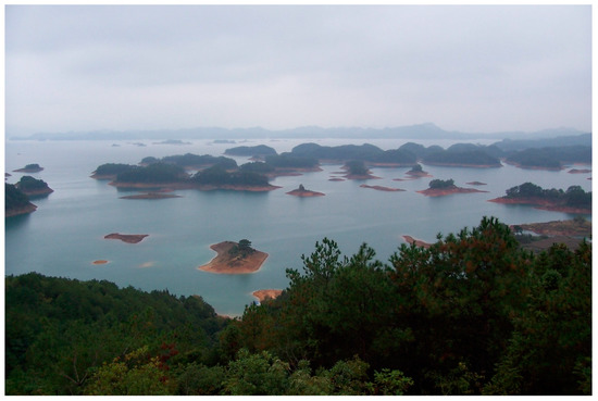 The TIL (29°22′ N to 29°50′ N and 118°34′ E to 119°15′ E) is a large artificial reservoir located in Southeastern China (Chun’an County, Zhejiang Province), which was formed after the construction of the Xin’an River Hydroelectric Power Station in 1958. The lake contains 1078 islands with areas larger than 2500 m2 and covers 60 km from east to west, and 50 km from north to south. It has a maximum depth of 108 m and an average of 34 m. Its surface area is 583 km2 and the island area is 409 km2. The terrain around the lake is complex, consisting primarily of low mountains and hills. The vast majority have altitudes between 120–600 m, while the highest elevation is 967 m. The zonal soil has medium thickness and fertility. Because of its location at the northern edge of the subtropical monsoon zone, the area has distinct seasons, with abundant sunshine and rainfall. The TIL possesses 1824 species of vascular plants, including 20 species that are under national protection, with a forest coverage rate of 95%. The TIL was declared a National Forest Park in 1986 [17,18].